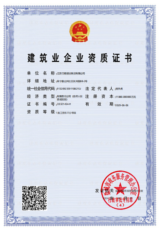 • 萬順集團(tuán)晉升為江蘇省二級(jí)資質(zhì)建筑單位2015-02-28
